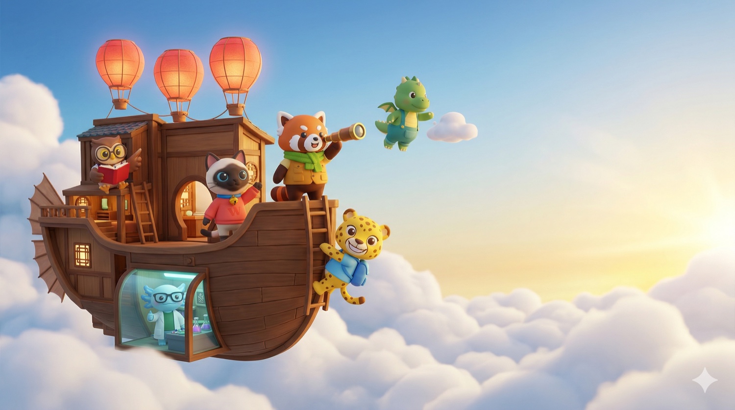 Apply NowEvery story is a new creation aboard the Story Ship. The same six characters, different adventures — so kids build real bonds with the crew as they build their Mandarin.